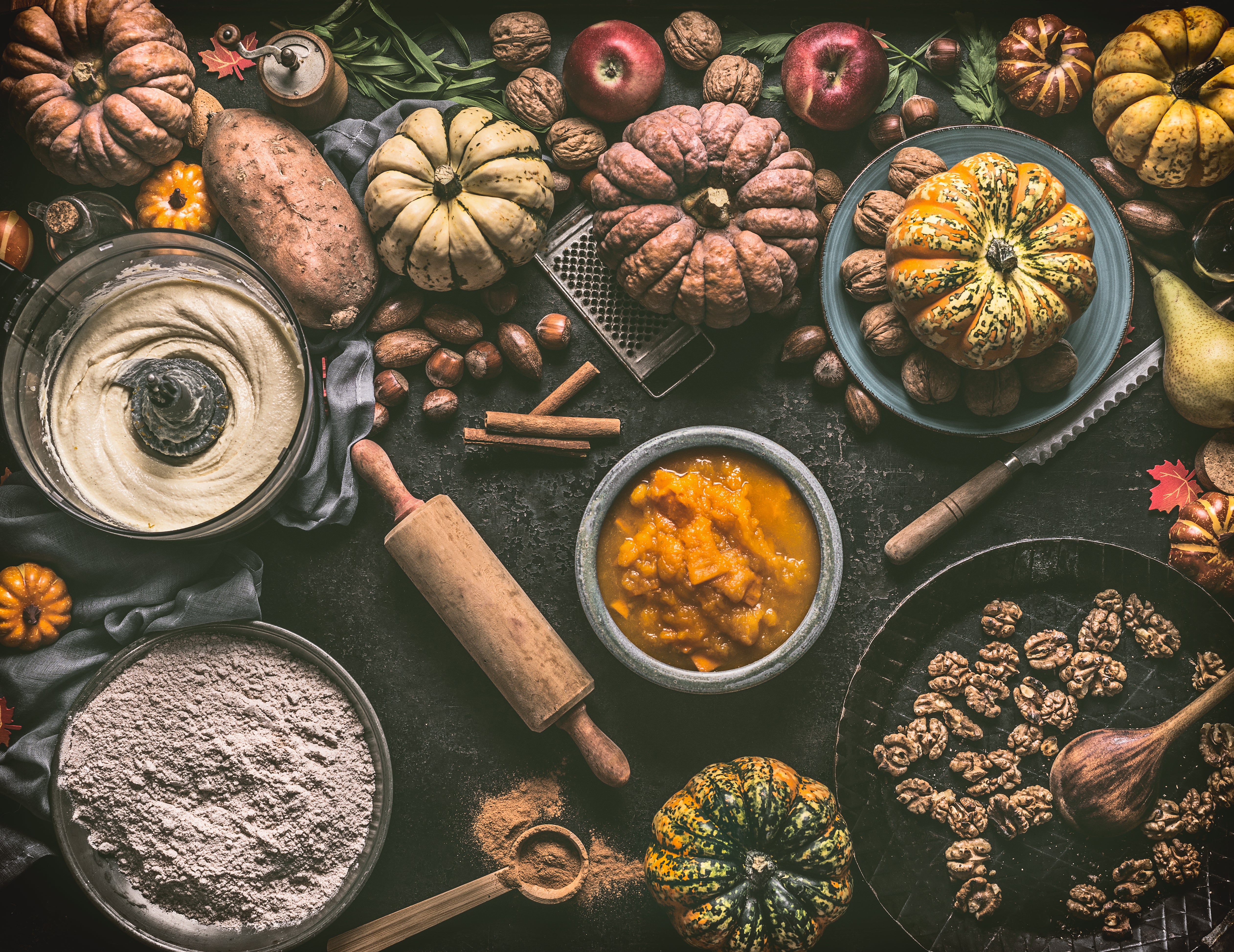 1. Für den Kürbiskuchen eine Springform mit Butter einfetten und den Backofen auf 190° vorheizen.