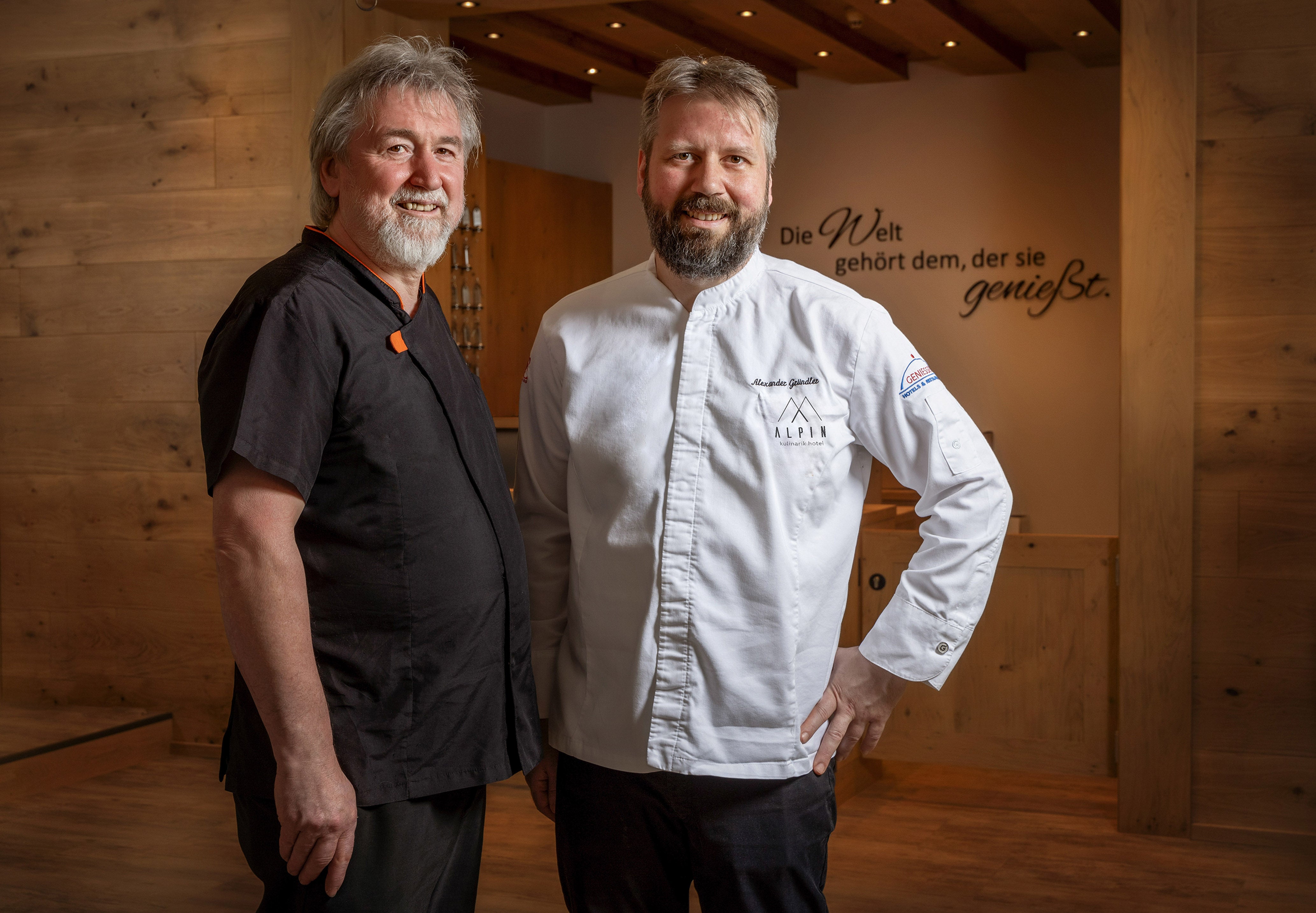 In unmittelbarer Nähe des Achensees findet sich das Alpin und verwöhnt mit haubengekrönten Spezialitäten. Vater Armin und Sohn Alexander Gründler sorgen für eine edle, mit vier Hauben gekrönte „Alpin-Aromaküche“, serviert im eleganten Gourmetstüberl oder im Genießer-Wirtshaus.