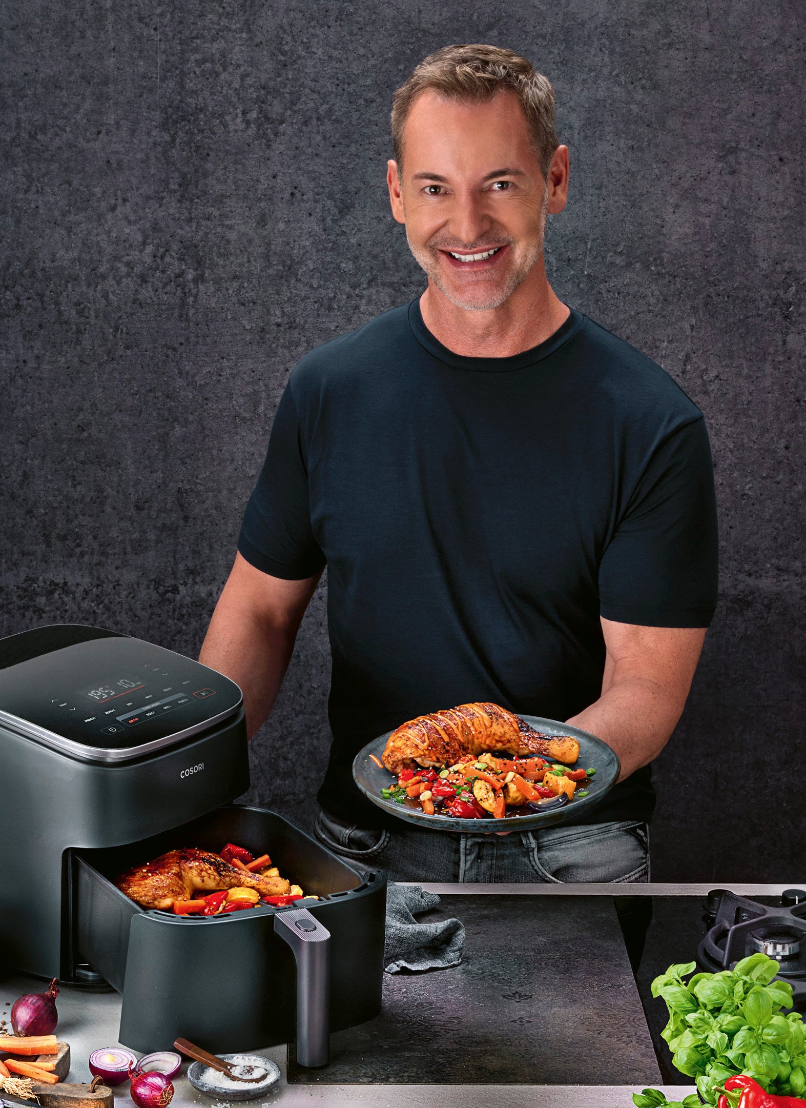 TV- und Sterne-Koch Christian Henze weiß, wie man gutes Essen unkompliziert auf den Tisch bringt. Aktuell serviert er die besten Airfryer-Rezepte für alle, die mit wenig Aufwand richtig groß aufkochen wollen. Mahlzeit!