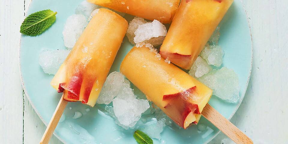 - Nach Geschmack mit Honig süßen und in 4 Eisförmchen füllen. Die Apfelstücke dazugeben und etwa 1 Stunde anfrieren lassen. Jeweils einen Holzstiel einstecken und weitere ca. 3 Stunden frieren lassen.