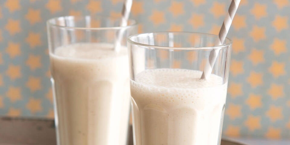 Die Bananen schälen und mit der Milch in einen Mixer geben. Die Vanilleschote längs aufschneiden, das Mark ausschaben und mit dem Honig dazugeben. Nun gut durchmixen und in zwei hohe Gläser gießen. Beispielsweise als Snack mit einigen Bananenscheiben servieren.