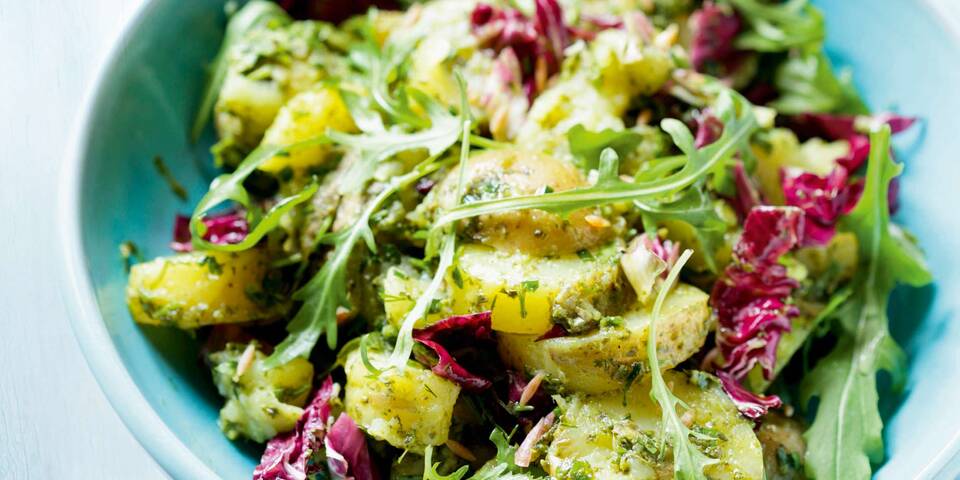 Blattsalat mit Erdäpfeln und Pesto