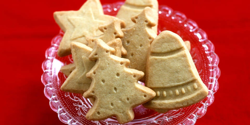 - Den Teig auf bemehlter Arbeitsfläche ausrollen und mit weihnachtlichen Ausstechern Kekse ausstechen. Diese auf das Backblech legen.