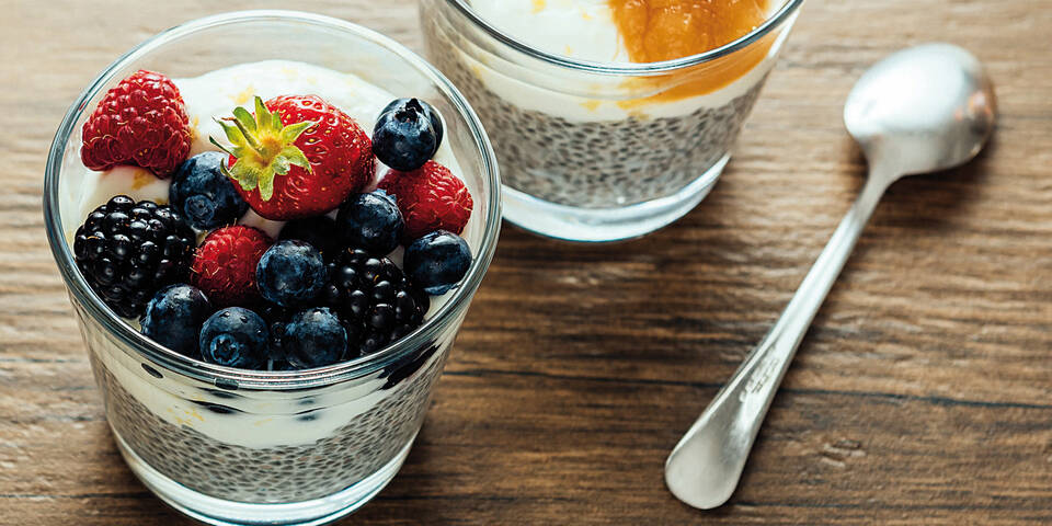 - Joghurt mit etwas Zitronensaft und Zitronenabgeriebenem verrühren, auf Wunsch süßen. Chia-Pudding und Zitronencreme in ein Glas schichten, mit Apfelmus oder frischen Beeren anrichten.
