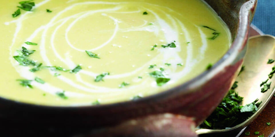 3. Etwa 30 Minuten kochen und danach im Mixer fein pürieren. Zusammen mit 100 ml Obers aufkochen und mit Salz und Pfeffer abschmecken. In Schälchen verteilen, das restliche Obers dekorativ darauf träufeln und mit der gehackten Petersilie bestreuen.