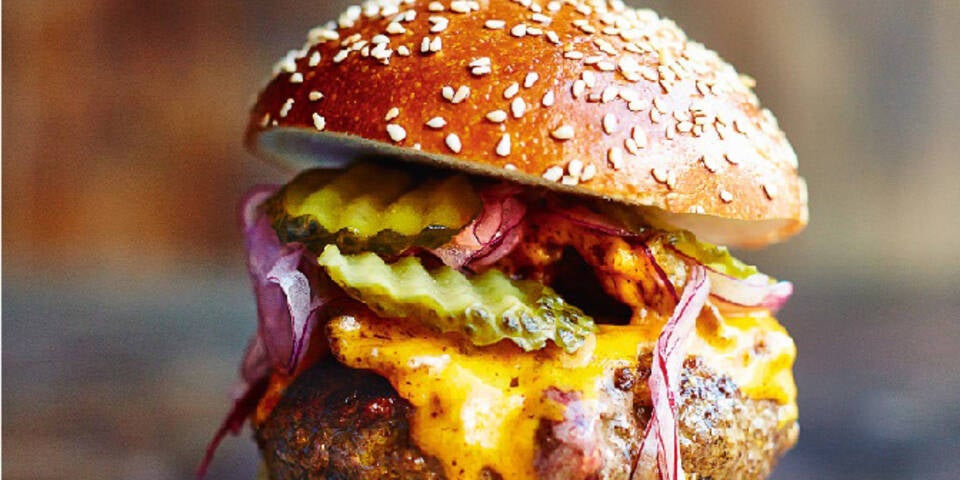- Für den besten Burger bitten Sie den Fleischer, 800 g Rinderkamm zu faschieren (Kamm hat genau die richtige Mischung aus Fett und Fleisch). Die Masse in vier Portionen teilen, mit angefeuchteten Händen zu Kugeln formen und zu Pattys von etwa 12 cm Ø – etwa 2 cm größer als die Burgerbrötchen – flach drücken. Auf einen eingeölten Teller legen und kalt stellen. Die Zwiebel in feine Streifen schneiden und in einer Schüssel mit dem Essig und 1 Prise Meersalz würzen. Die Gewürzgurken in Scheiben schneiden, die Burgerbrötchen halbieren. Für Salat und Dressing den Eisbergsalat in feine Streifen schneiden, in eine Schüssel füllen und mit den restlichen Zutaten verrühren; abschmecken.