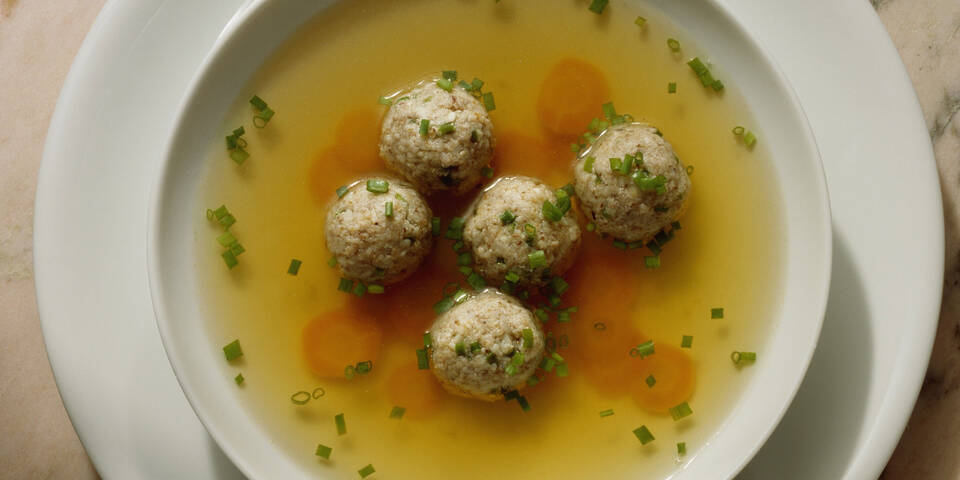 - Die Karotte schälen und in Scheiben schneiden, in einem Liter Fond kurz kochen, mit Salz und Pfeffer abschmecken. Aus der Dinkelmasse kleine Bällchen formen und in die heiße Suppe geben und ohne Hitze ca. 10 Minuten gar ziehen lassen. Mit Schnittlauch bestreuen und servieren.
