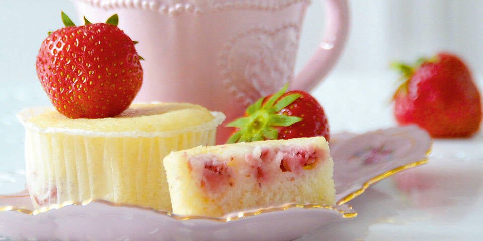 - Die beiden Massen mit dem Schneebesen zu einem Teig vermengen. Die Erdbeerstückchen unterrühren. Den Teig in Muffinformen füllen und 20 Minuten backen. Die abgekühlten Muffins mit Staubzucker bestreuen.