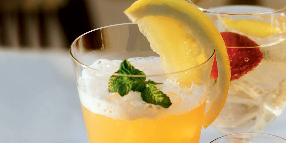 Alle Zutaten mit Eiswürfeln im Shaker kurz schütteln und in ein zu 1/3 mit Crushed Ice gefülltes Glas abseihen. Mit einer Spalte Zitrusfrucht garnieren.