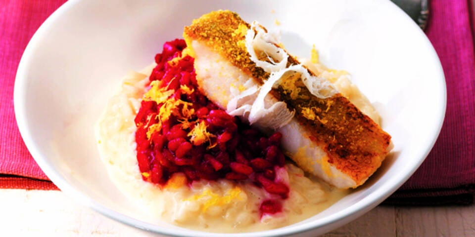 Gebratenes Zanderfilet auf Rote-Rüben-Risotto