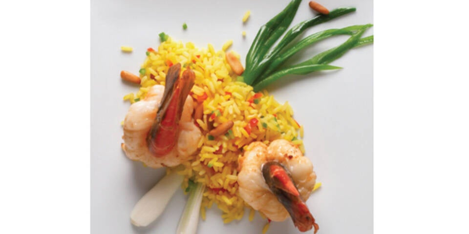 Gedämpfte Garnelen auf Safranpilaw