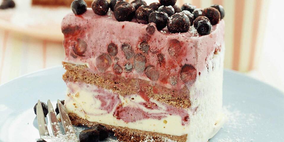 - Für mindestens 2 Stunden in das Gefrierfach stellen. Vor dem Servieren die Torte ca. 30 Minuten in den Kühlschrank stellen, die restlichen Heidelbeeren auf der Tortenoberfläche verteilen und servieren.
