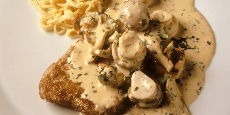 - Die Schnitzel in die Soße legen und abschmecken. Mit Petersilie bestreuen und sofort servieren.