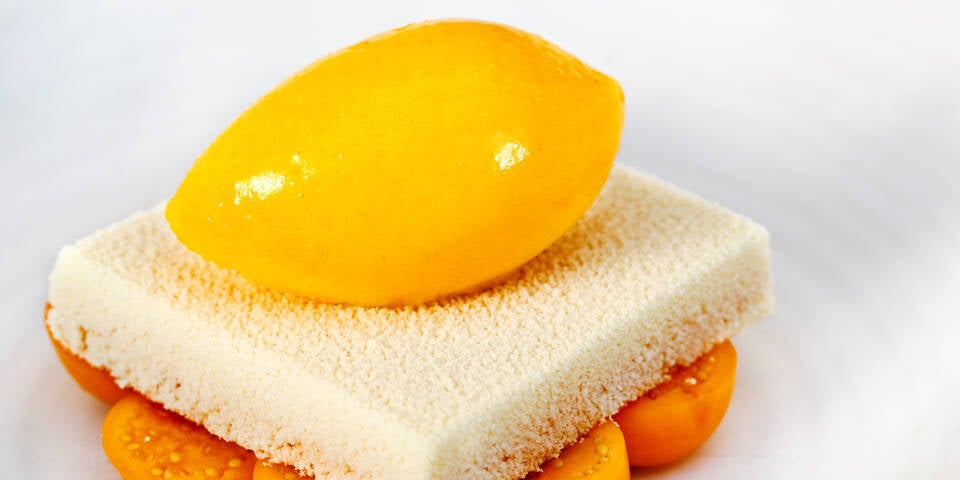 - Für den Jus die Kapstachelbeerfrucht mixen und den reinen Saft der Frucht verwenden.