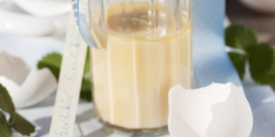 - Auf einem Eiswasserbad kalt rühren und dabei den Rum einschlagen. In eine saubere Flasche abfüllen, gut verschließen und kühl sowie trocken lagern. Ist ungefähr eine Woche im Kühlschrank haltbar.