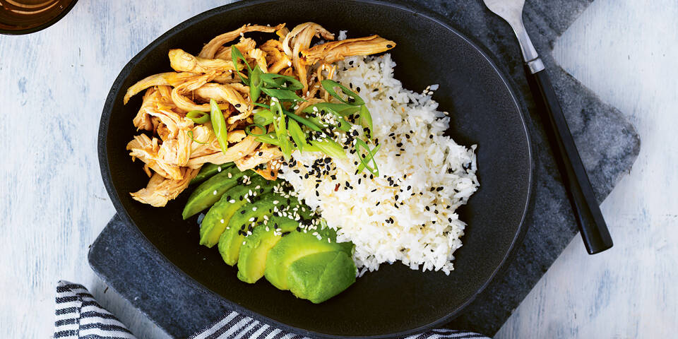 Tipp. Fertige Teriyaki-Sauce statt Sojasauce, Sesam und Reisessig.