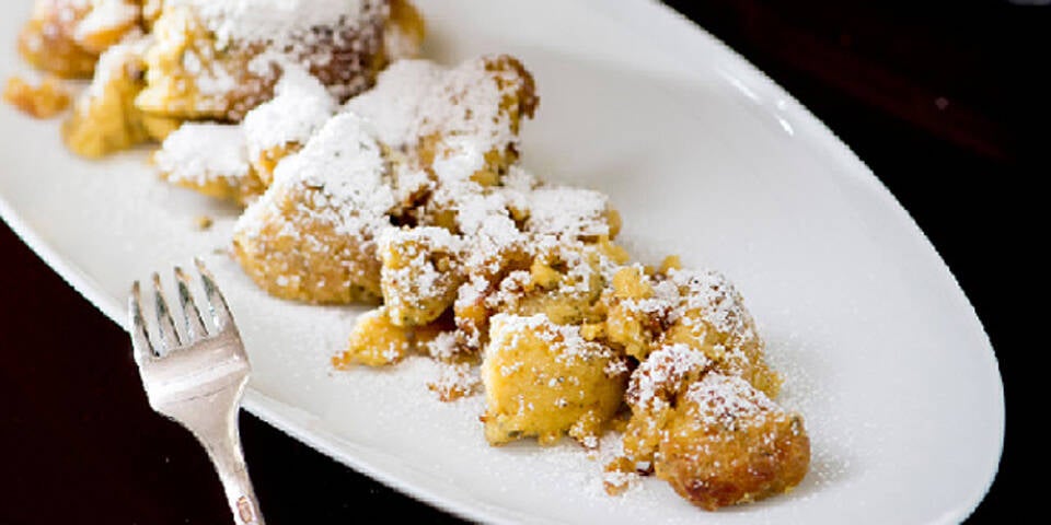 - Pfanne zugedeckt 15 Minuten bei 200 °C ins Rohr geben. Danach Schmarren auf die Arbeitsfläche stürzen und mit zwei Gabeln zerteilen. Zuletzt die Stücke noch einmal mit Butter anrösten.