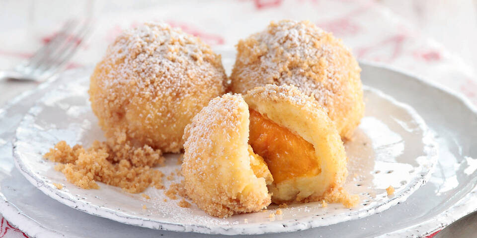 - Die Knödel mit einem Schaumlöffel aus dem Wasser heben und in der Bröselbutter wälzen. Auf Tellern anrichten und mit Staubzucker bestaubt servieren.