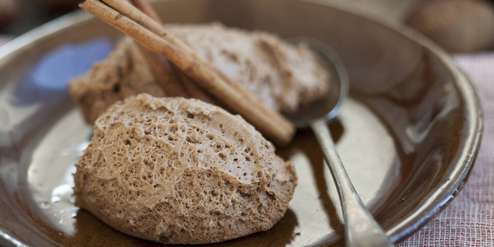 - Für mindestens 4 Stunden in den Kühlschrank stellen. Zum Servieren mit 2 Löffeln Nocken abstechen und mit Zimt garniert servieren.