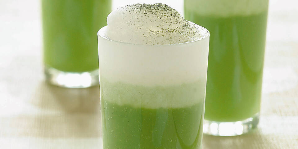 - Auf vier Gläser verteilen und die heiße Milch aufschäumen. Die Milch vorsichtig auf den Tee gießen und zum Schluss den Milchschaum aufsetzen.