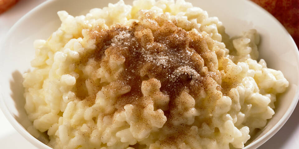 - Die Äpfel schälen, das Kernhaus entfernen und fein raspeln. Während der letzten ca. 5 Minuten unter den Reis rühren. Mit Zimtzucker bestreut servieren.