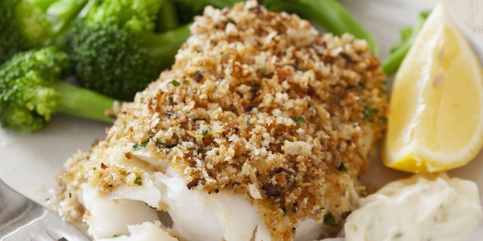 - Den Brokkoli waschen und in Röschen teilen. In kochendem Salzwasser ca. fünf Minuten bissfest garen. Die Fischfilets mit dem Brokkoli auf Tellern anrichten. Dazu zum Beispiel Zitronenspalten und Sauce Tartare reichen.