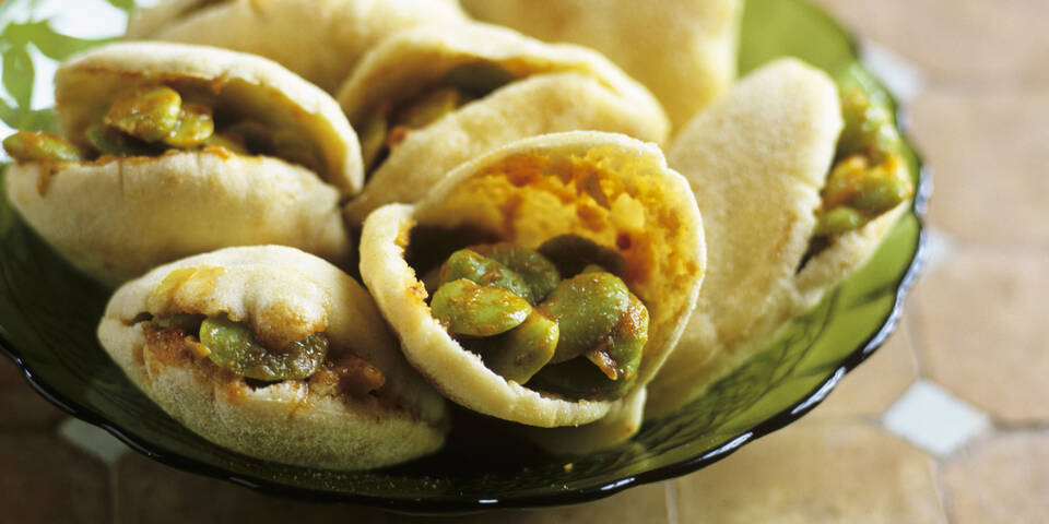 - Abkühlen lassen, dann mit Salz und Zitronensaft abschmecken. Pitabrote aufschneiden und mit dem Bohnensalat gefüllt servieren.