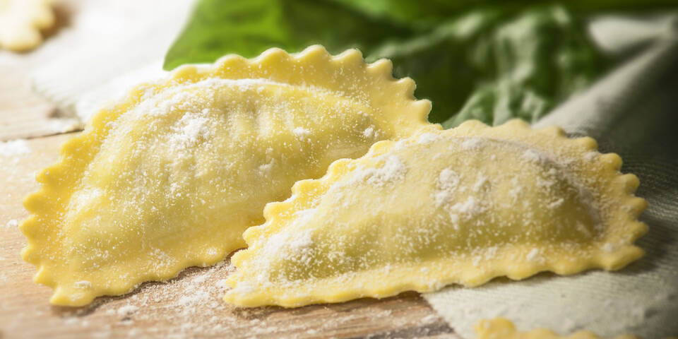 - Die einzelnen Ravioli rechteckig mit einem Teigrädchen ausschneiden.