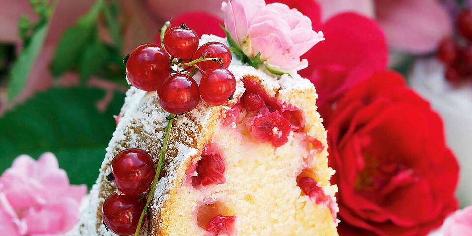- Die Beeren nur kurz unterheben. In die vorbereitete Backform füllen, glatt streichen und im Ofen ca. 1 Stunde backen (Stäbchenprobe). Aus dem Ofen nehmen, abkühlen lassen und vorsichtig aus der Form gestürzt völlig auskühlen lassen. Zum Servieren dick mit Staubzucker bestauben und nach Belieben mit Rosen und Ribiseln garnieren.