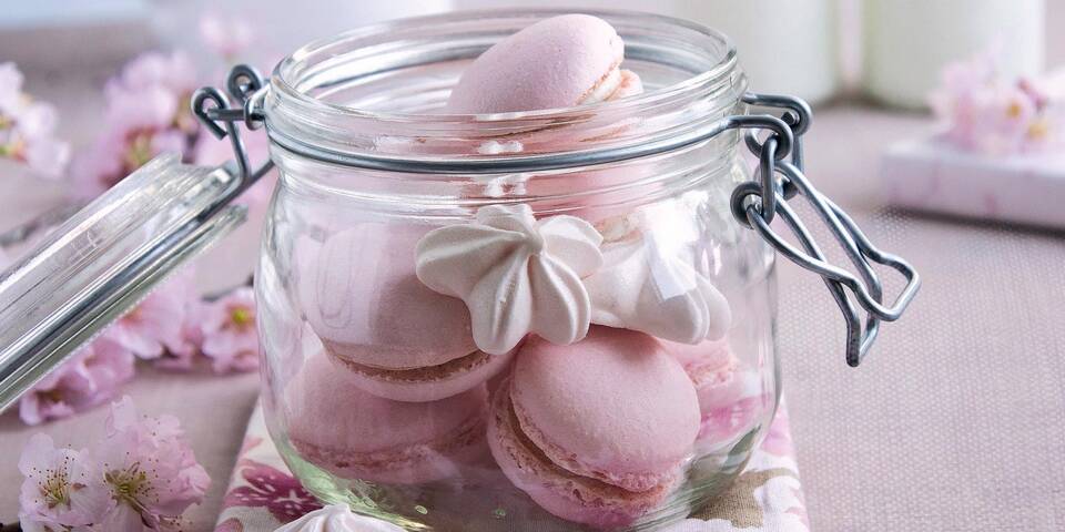 - Die Creme auf die Hälfte der Makronen verstreichen und mit den übrigen Hälften belegen. Leicht andrücken und servieren.