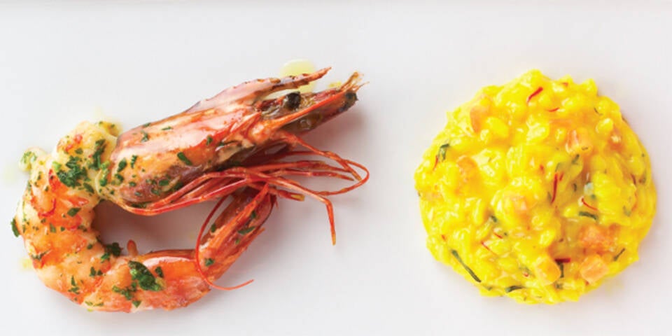 In einer Pfanne einen Schuss Olivenöl erhitzen, Gamberoni darin auf den Schnittflächen braten. Petersilienblättchen von den Stielen zupfen und fein hacken. Petersilie auf die Gamberoni streuen. Risotto auf Teller geben, Gamberoni gefällig dazulegen.