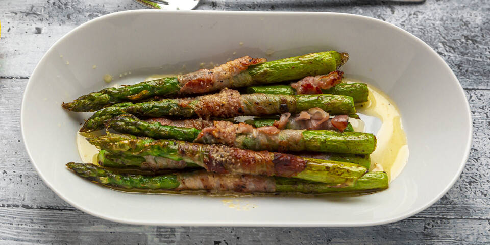1. Den Spargel schälen, waschen und die Enden abschneiden. Die Stangen über Salzwasser in 12-15 Minuten nicht zu weich dämpfen, dann beiseitestellen und kurz ausdampfen lassen.