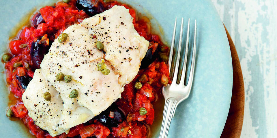 Schellfisch mit Kapern-Paradeiser-Sauce