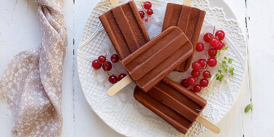 - Das Obers steif schlagen und unterheben. Auf die Eisförmchen verteilen und etwa 2 Stunden anfrieren lassen. Jeweils mittig einen Holzstiel hineinstecken und weitere ca. 2 Stunden vollständig frieren lassen.
