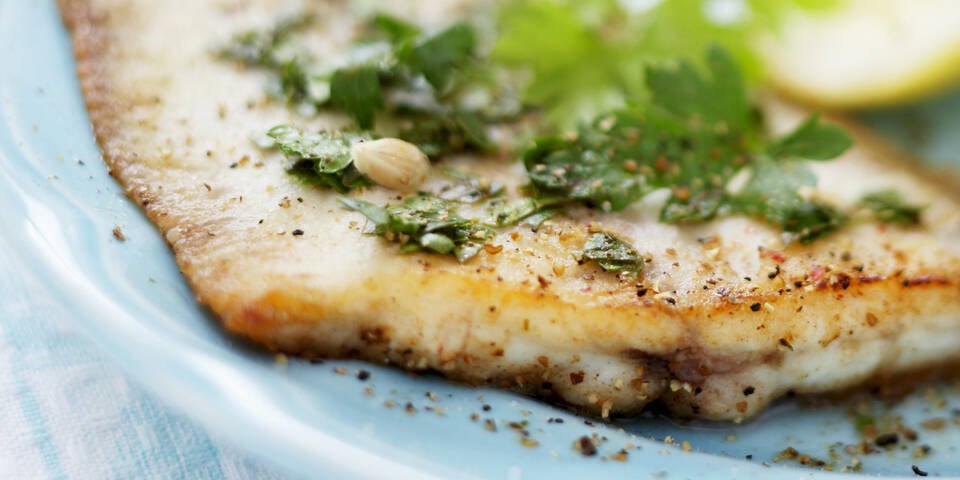 - Die Butter mit dem Öl in einer beschichteten Pfanne erhitzen und die Filets auf der Hautseite 3–4 Minuten braten. Wenden, die Pfanne vom Herd nehmen und die Filets in der Nachhitze ca. 1–2 Minuten fertig garen. Mit gehackter Petersilie und den vorbereiteten Zitronenspalten garniert servieren.