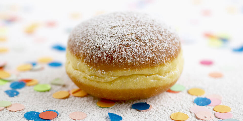 - Teigkugeln portionsweise im heißen Fett backen, dabei einmal wenden, das dauert pro Seite ca. 1–2 Minuten. Krapfen mit einem Schaumlöffel aus dem Fett nehmen, auf Küchenpapier abtropfen und abkühlen lassen.