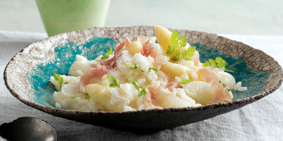 Spargelrisotto mit Parmaschinken