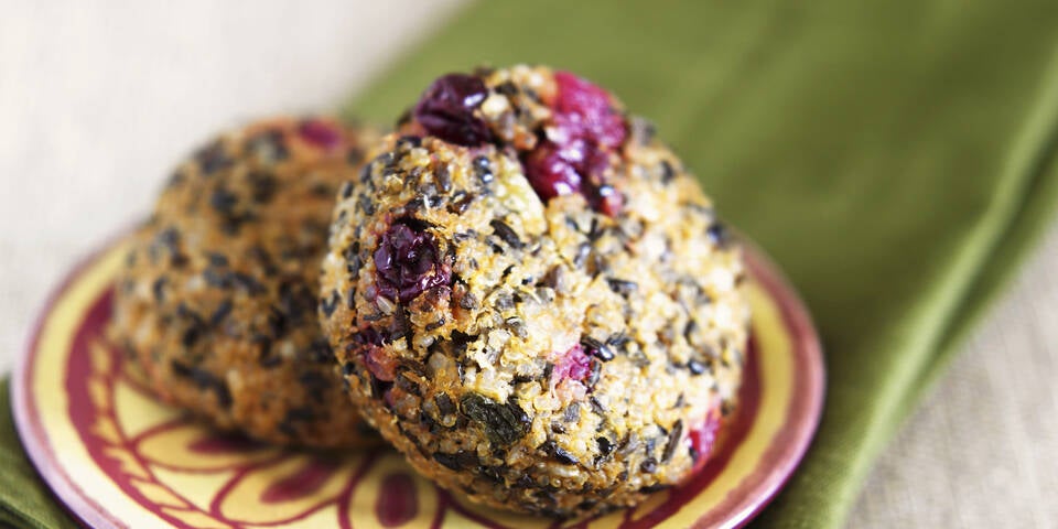 - Die Süßkartoffeln waschen und ca. 30 Minuten gar dämpfen. Quinoa in kochendes Salzwasser streuen und etwa 20 Minuten ausquellen lassen. Die Cranberrys grob hacken. Die Zwiebel schälen und fein würfeln. In 1 EL heißem Öl glasig anschwitzen. Die Cranberrys untermengen und mit ein wenig Wasser ablöschen. Von der Hitze nehmen, abkühlen und quellen lassen.