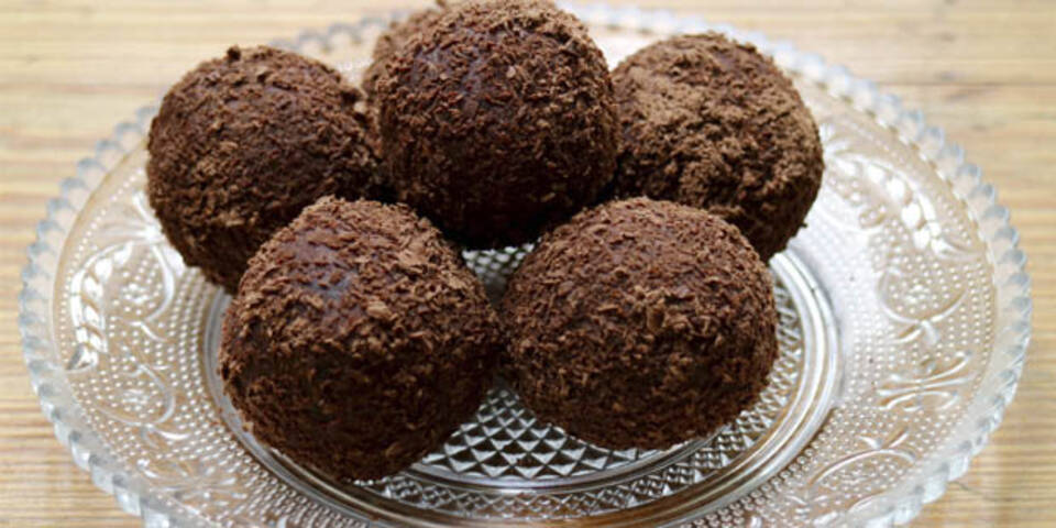 - Aus der hergestellten Masse Kugeln formen und in Kakao-Vanillezucker-Mischung oder in geriebener Kuvertüre wälzen.