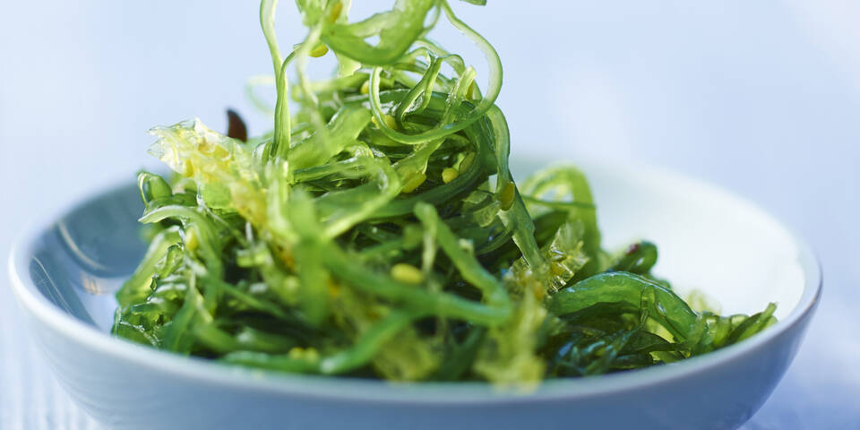 - Die Algen waschen und abtropfen lassen. In eine Schale geben und mit dem Limettensaft, Zucker und Pfeffer würzen. Den Sesam und das Öl untermischen, abschmecken und servieren.