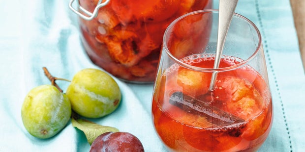 Dauer: 20 min Schwierigkeit: leicht Portionen: 2 Zutaten 1 1/2 kg Pflaumen 100 g Zucker 4 cl Pflaumenschnaps 250 ml Apfelsaft, klar 1 Zitrone, Saft 1 Zimtstange Zubereitung 1. Die Pflaumen waschen, entsteinen und halbieren. Den Zucker in einem Topf leicht karamellisieren lassen und mit dem Schnaps ablöschen. Den Apfel- und Zitronensaft zugeben und aufkochen lassen. 2. Die Zimtstange in Stücke brechen und zusammen mit den Pflaumen in die Flüssigkeit geben. Kochen, bis die Pflaumen beginnen zu zerfallen, dann in vorbereitete Gläser füllen und gut verschlossen auskühlen lassen. |
