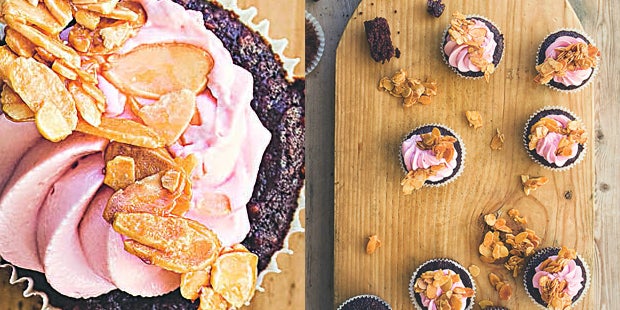 Brownie-Cupcakes mit rosa Frosting