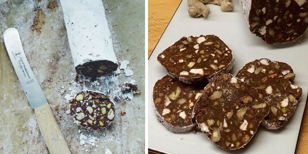 Tipp: Rollt man die Salami vor dem Kühlen in Puderzucker, sieht sie wie eine „echte“ Salami aus!