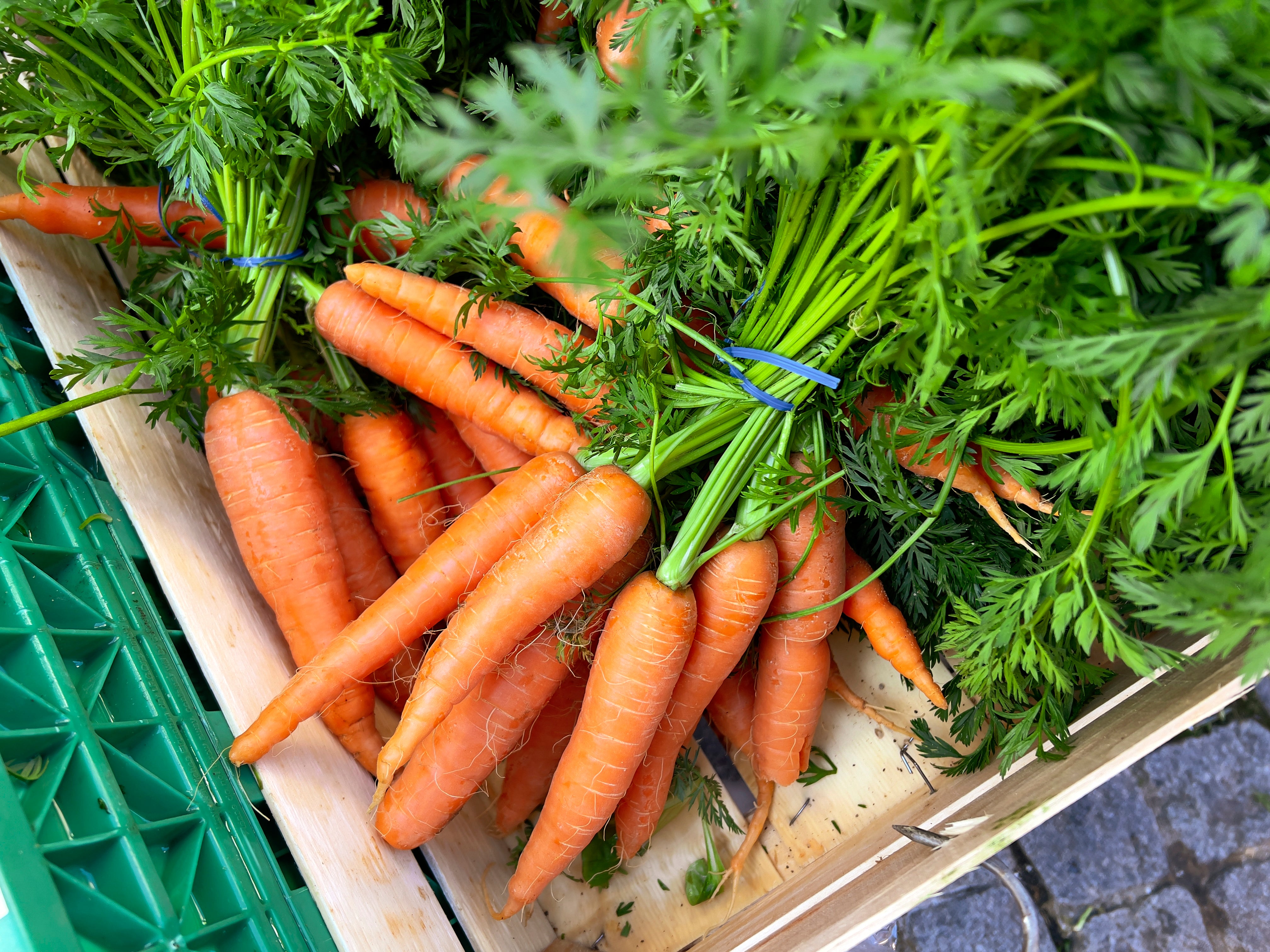 Übrigens: Auch das Karotten-Grün ist sehr gesund, weil es neben Ballast- und Bitterstoffen, die beide zu einer gesunden Verdauung beitragen, auch noch Kalzium enthält. Das sogenannte Karottenkraut kann man es entweder im Salat oder in einem der beliebten Green-Smoothie genießen.