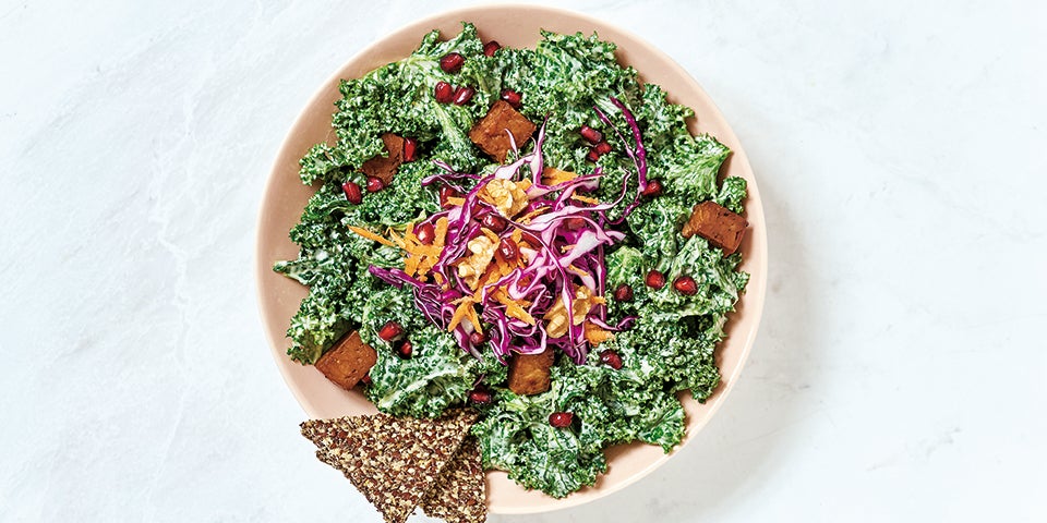Für das Dressing alle Zutaten vermischen und kurz in einem Blender mixen, bis alles gut vermischt ist. Wer keinen Blender zu Hause hat, kann das alternativ auch in einer Schüssel mit einer Gabel und etwas Geduld machen. Den Grünkohl gut waschen und die Stängel in der Mitte entfernen. Die Blätter nachher noch etwas zerkleinern und in einer Schüssel mit ca 3/4 von dem Dressing vermengen und den Grünkohl damit „massieren“. Das bedeutet, dass man mit den Händen den Grünkohl so lange knetet, bis er weich ist, das kann einige Minuten dauern – also nicht schüchtern sein. Dann kommt das geschnittene Rotkraut, die Karottenraspeln und die Granatapfelkerne dazu, oben drauf die gehackten Walnüsse, und wer möchte, kann das Ganze noch mit Microgreens garnieren. Zum Schluss kommt noch das restliche Dressing darüber!