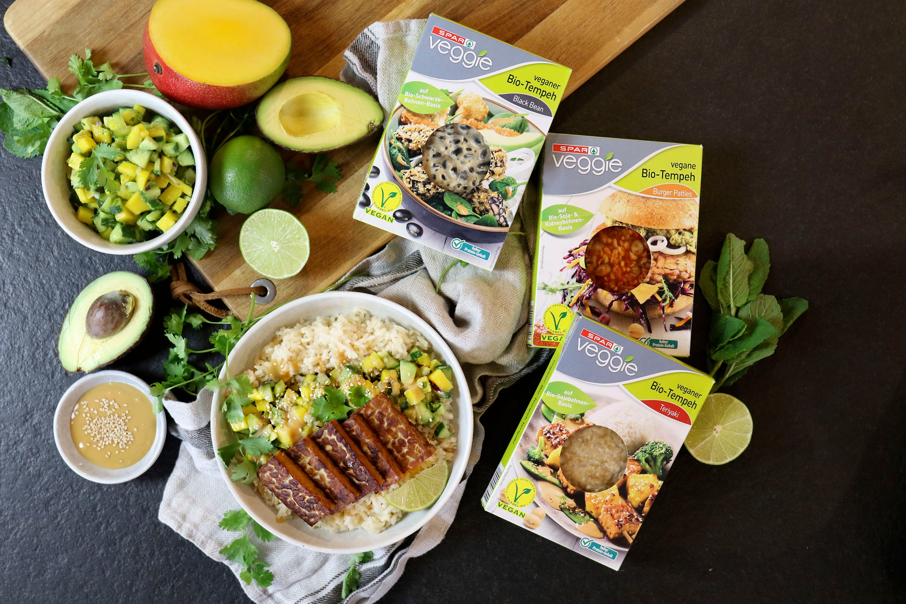 Die Spar Veggie Tempeh in drei Sorten sind reine Bio-Produkte, die sorgfältig in einem Familienbetrieb im Allgäu hergestellt werden. Tempeh ist eine ausgezeichnete Proteinquelle und sorgt für neue Vielfalt in der Küche. Ab sofort ist der Spar Veggie vegane Bio-Tempeh in den Sorten, Teriyaki, Black Bean und als Burger Pattie erhältlich.