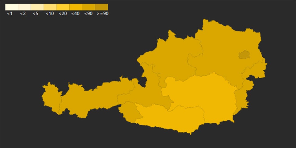 Weiterhin nicht einzeln dargestellt werden die Wiener Bezirke. Laut AGES ist aufgrund der hohen Mobilität der Bevölkerung innerhalb der Bundeshauptstadt im Vergleich zu Flächenbezirken anderer Bundesländer ist eine Darstellung nach Bezirken aus epidemiologischer Sicht nicht zielführend.