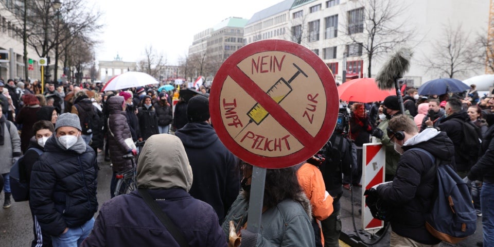 Seit Beginn der Debatte über die Corona-Impfpflicht mehren sich nach Erkenntnissen der Meldestelle RIAS antisemitische Äußerungen von Gegnern der Pandemiemaßnahmen. Allein zwischen 20. November und 8. Jänner seien in Deutschland 91 Corona-Demonstrationen mit judenfeindlichen Inhalten registriert worden, berichtete der Bundesverband der Recherche- und Informationsstellen Antisemitismus (RIAS) am Freitag in Berlin.