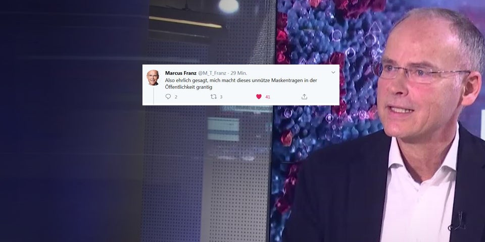 "Mich macht das grantig", kritisiert jetzt der Allgemeinmediziner Dr. Marcus Franz die Maskerade auf Österreichs Straßen: Es sei "unsinnig", eine Maske zu verwenden, wenn man allein unterwegs sei.