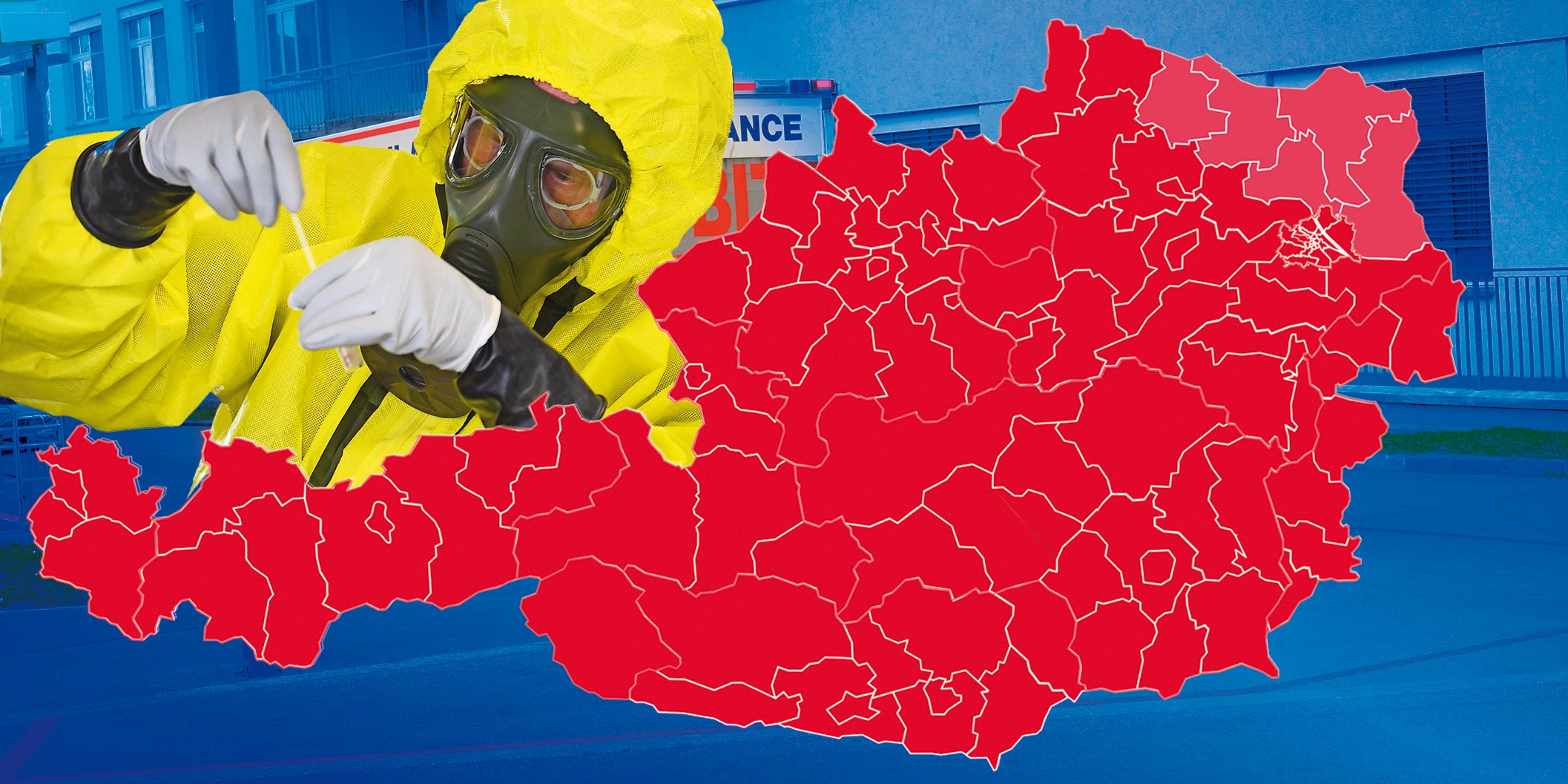 30 Bezirke liegen gar über einem Falldurchschnitt von 500 in sieben Tagen und fünf Bezirke – in Kärnten, Salzburg, Oberösterreich und Tirol – gar über 800. In Zukunft soll es in diesen Extrembezirken regelmäßige Screenings (Massentests) geben. Derzeit bleibt jedenfalls ganz Österreich rot.